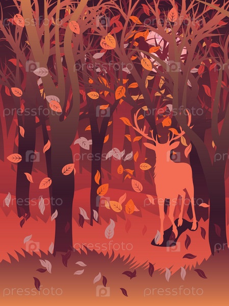 Олень в лесу осенью