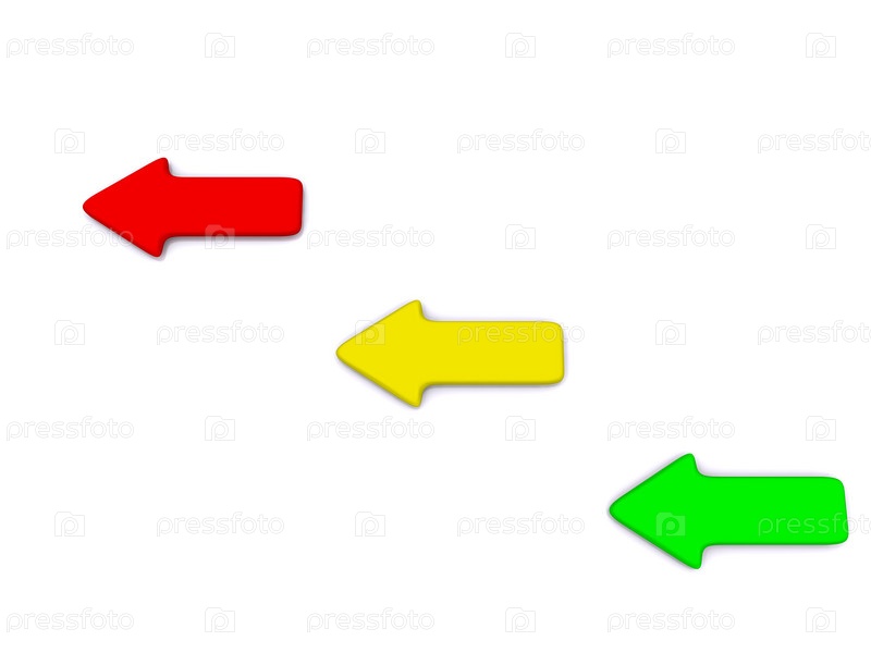 Красные, желтые и зеленые стрелки на белом фоне. 3D