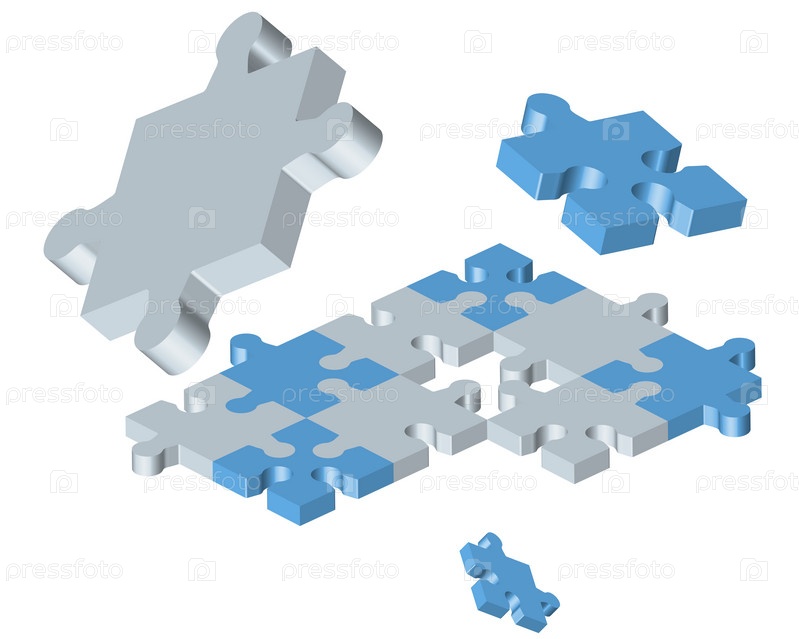 Векторная иллюстрация, белые и голубые пазлы