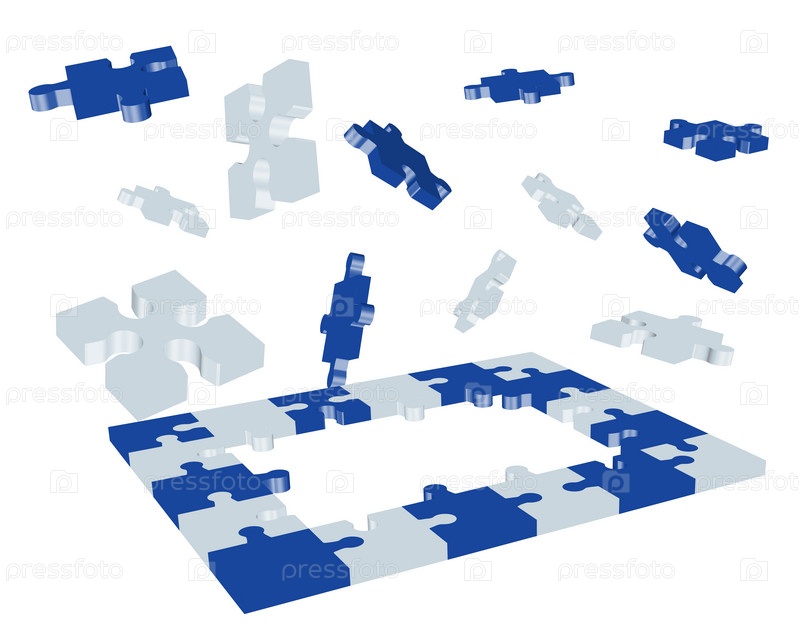 Векторная иллюстрация, белые и синие пазлы