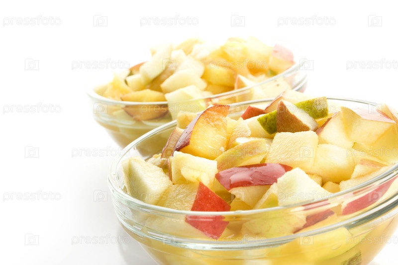 Фруктовый салат с яблоками, апельсинами, персиками и грушами