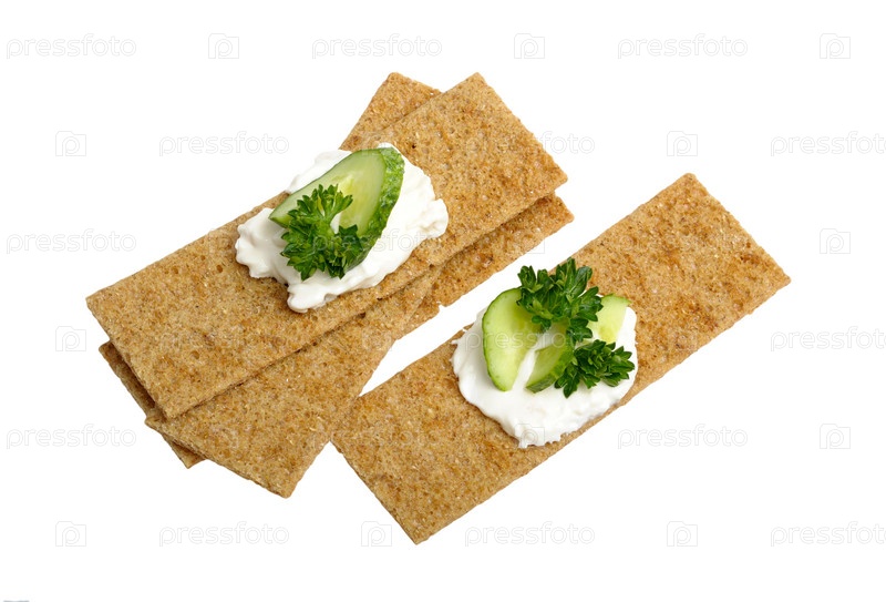 Хрустящие хлебцы с творогом, огурцом и петрушкой