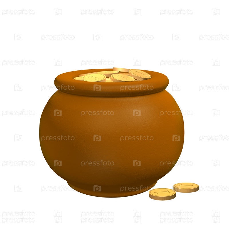 Глинистый горшок с золотыми монетами