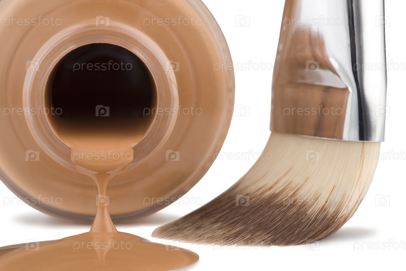 Тональный крем и кисть на белом фоне