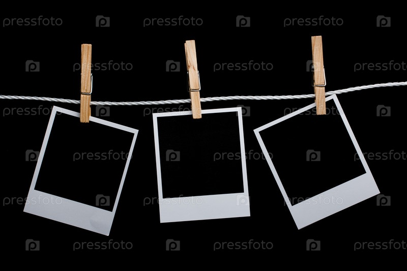 Пустые фотографии висят на веревке