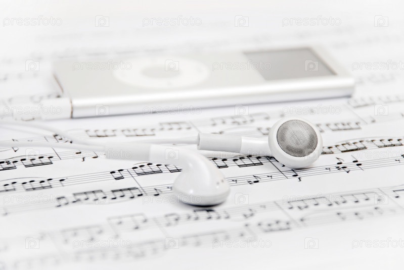 Плеер и наушники на нотном листе