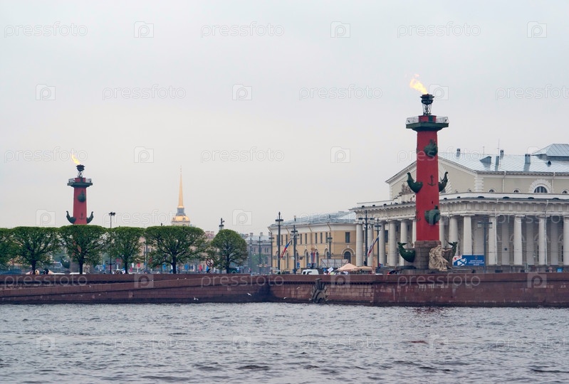 Ростральные колонны с зажженными огнями (Санкт-Петербург)