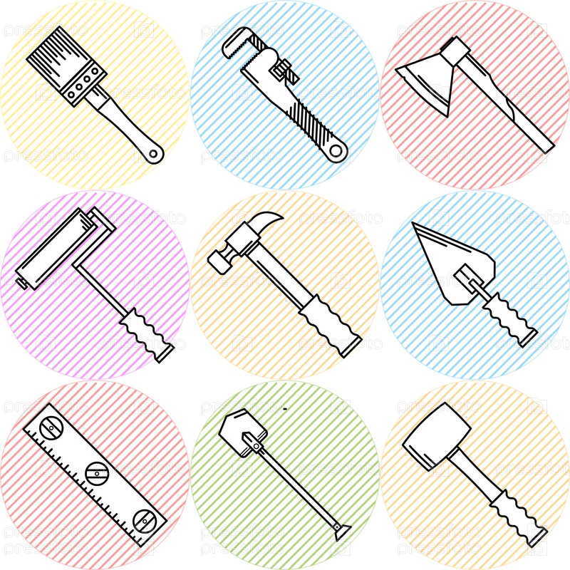 Столярные инструменты, иконки на белом фоне