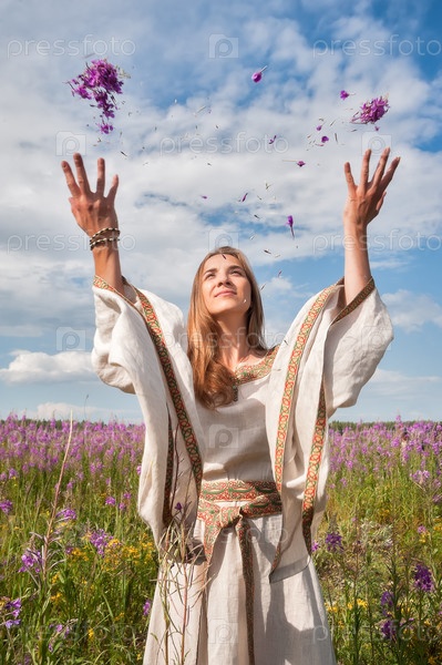 Красивая женщина на лугу