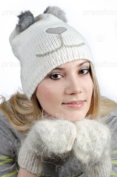 Девушка в варежках и шапке