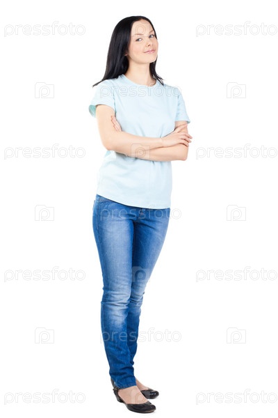Портрет счастливой молодой женщины, на белом фоне
