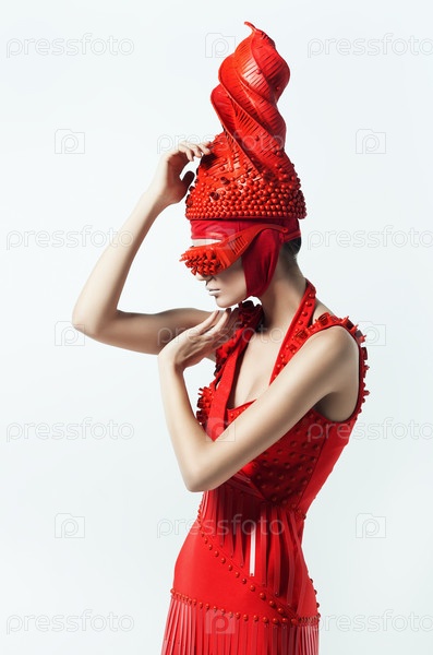 Женщина в красном платье и шляпе