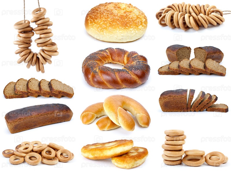 Набор различных мучных изделий на белом фоне