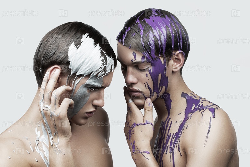 Модели-мужчины с краской на лице
