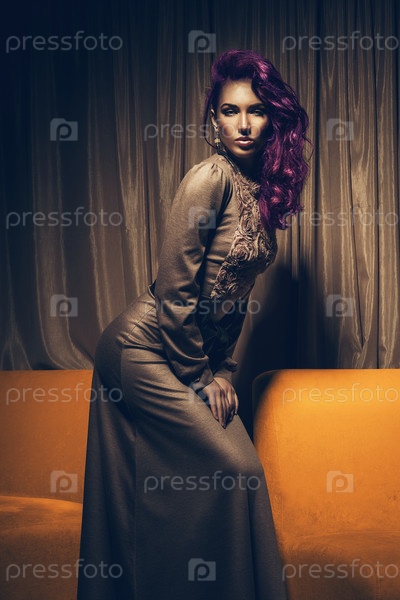 Женщина в платье с фиолетовыми волосами