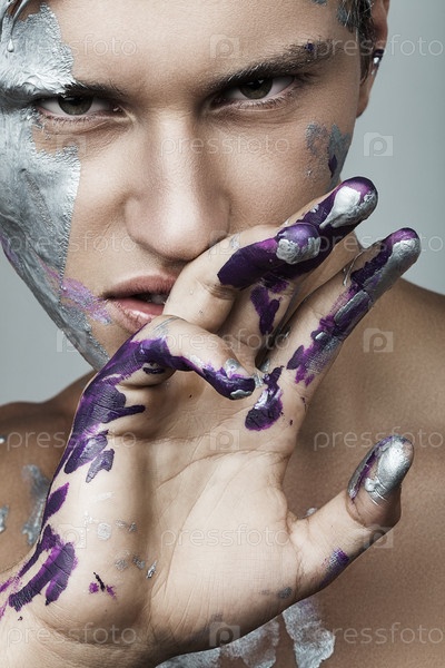 Красивый чувственный мужчина с краской на теле
