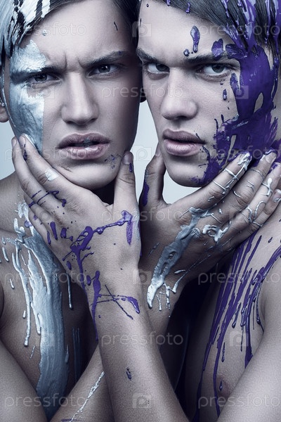 Двое мужчин-моделей с краской на теле