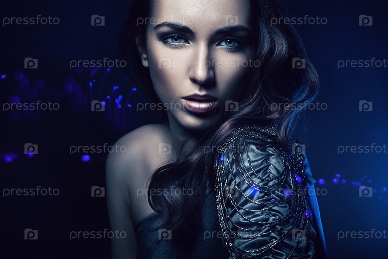 Портрет красивой женщины в синем свете
