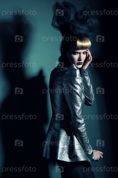 Женщина в серебристом жакете