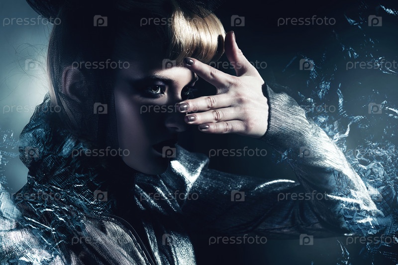 Женщина в серебристом жакете