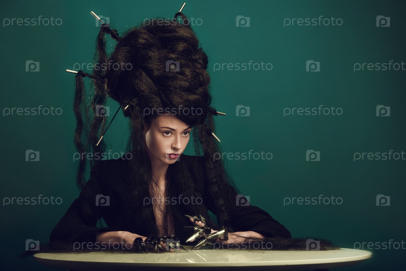 Модель с высокой прической