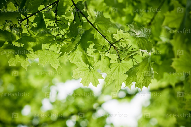 Свежие зеленые листья на ветке, крупный план
