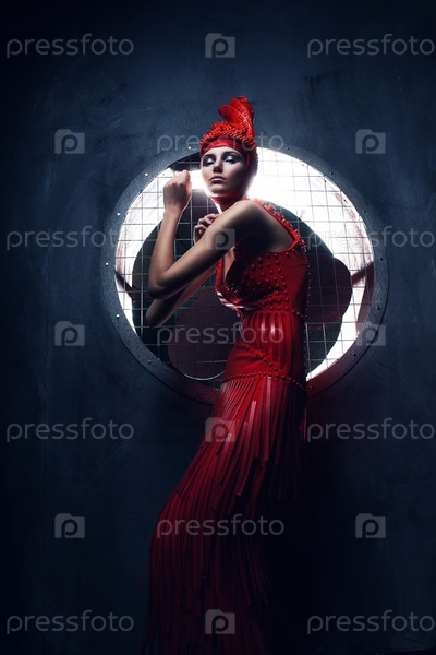 Женщина в красной шляпе и платье