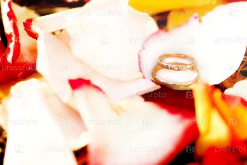 Золотые кольца и лепестки роз