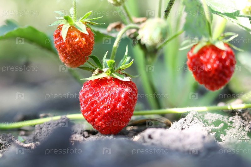 Спелая клубника на ветке