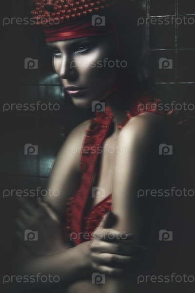 Женщина в красном платье и шляпе