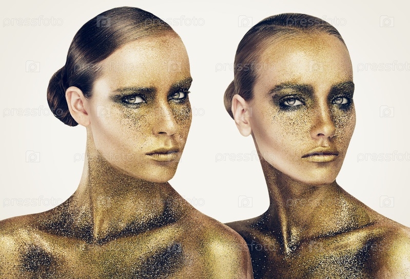 Две красивые женщины с золотым боди-артом