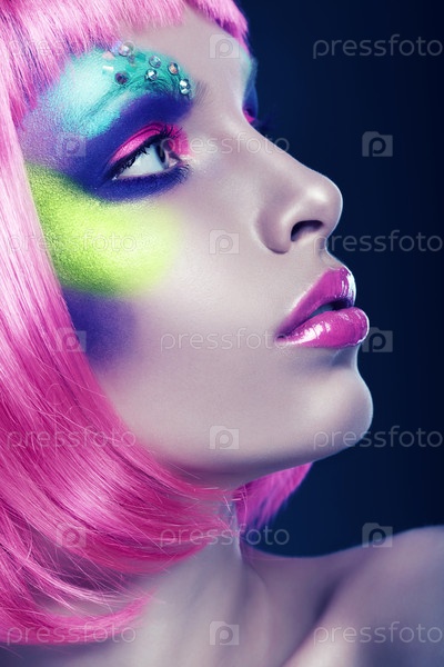 Женщина с розовыми губами и волосами