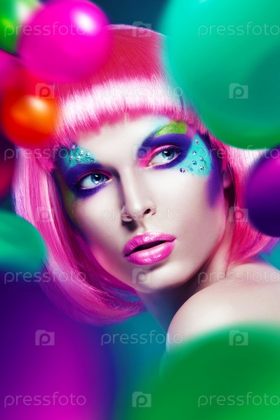 Женщина с розовыми губами и волосами