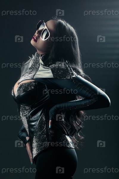 Красивая женщина в черном платье и солнцезащитных очках