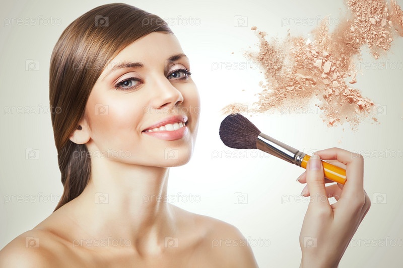 Красивая женщина наносит пудру
