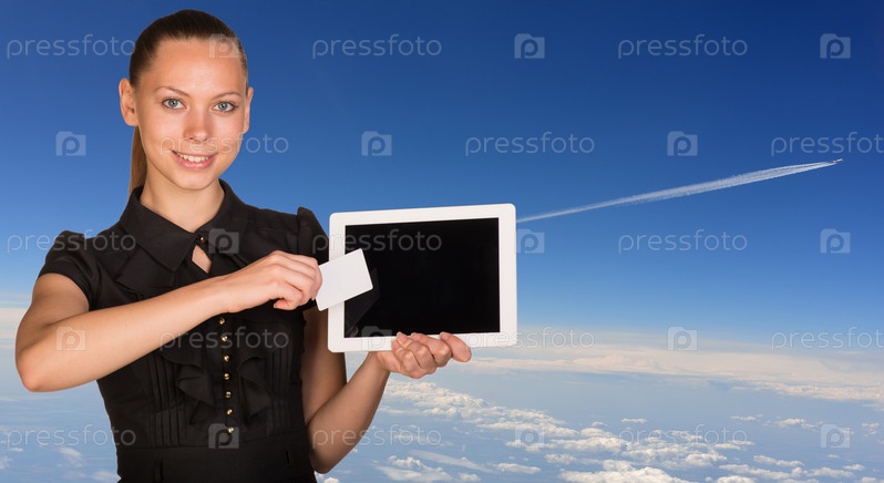 Бизнес-леди с планшетом и визиткой