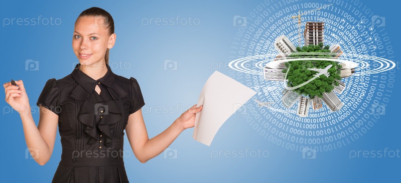 Красивая деловая женщина держит лист бумаги