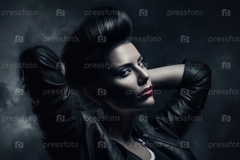 Модель позирует на темном фоне