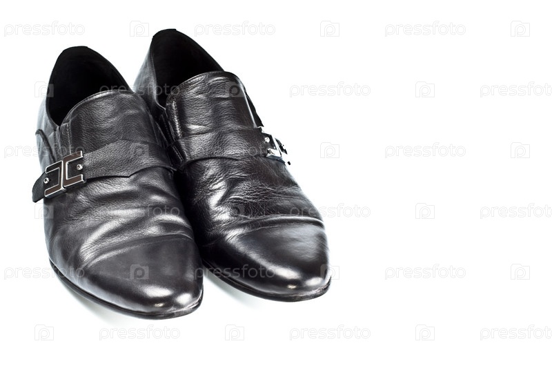 Черные мужские туфли на белом фоне