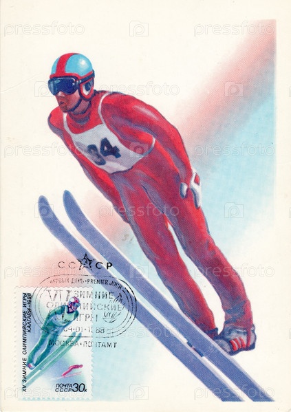 Почтовая карточка СССР, прыжки с трамплина