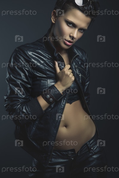 Стильная женщина в кожаной куртке