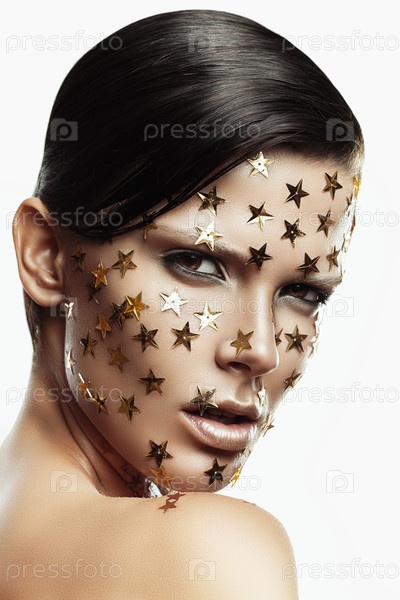 Портрет женщины с золотыми звездами на лице