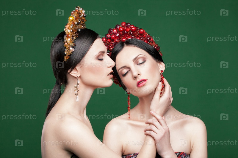 Две модели позируют на темном фоне