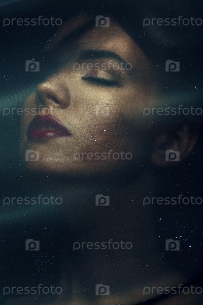 Женщина под прозрачной тканью