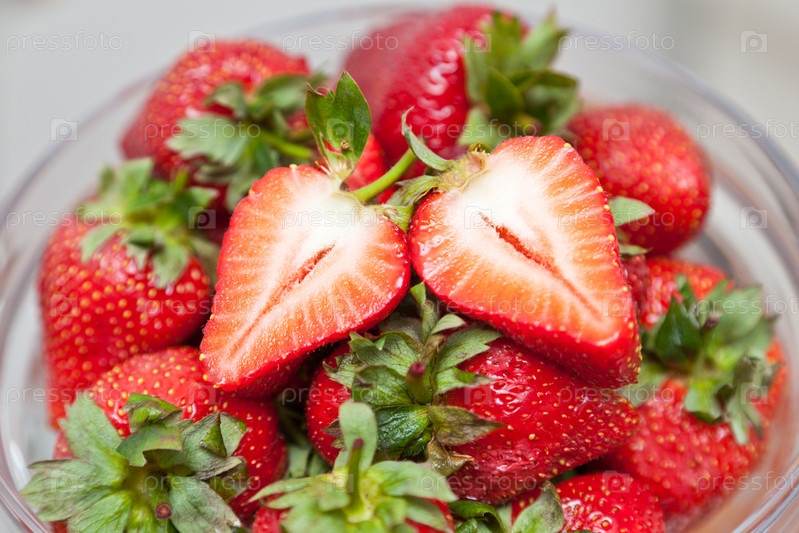 Спелая клубника в миске крупным планом