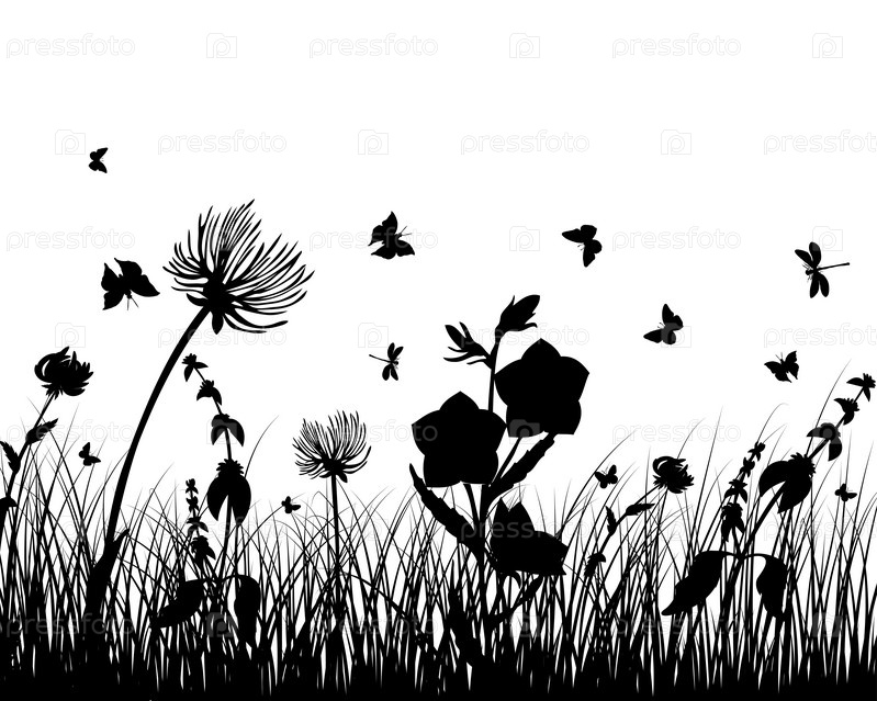 Силуэт травы на белом фоне