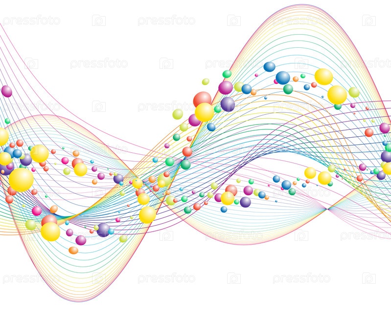 Фон с волнами и разноцветными пузырьками
