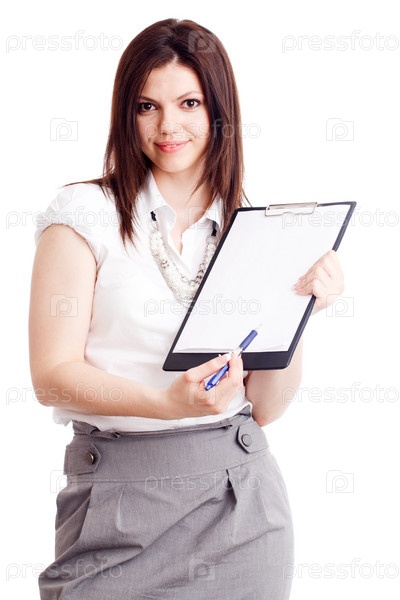 Молодая бизнес-леди предлагает ознакомиться с документами