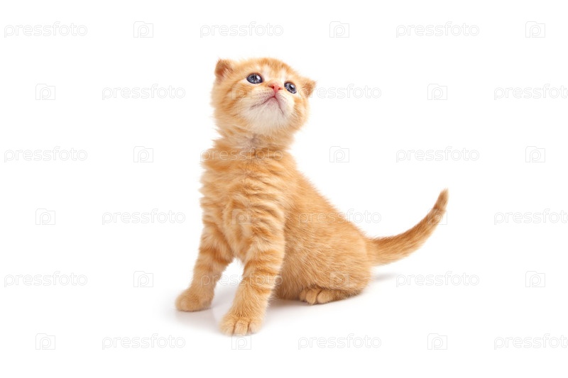Рыжий котенок на белом фоне