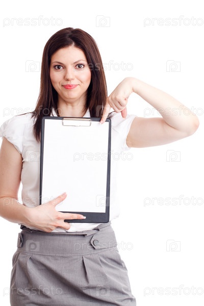 Молодая бизнес-леди предлагает ознакомиться с документами